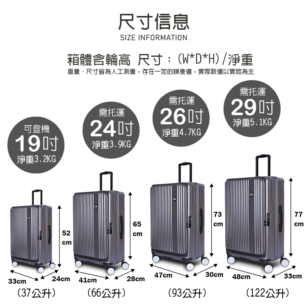26吋 73*47*30CM(含輪)/淨重4.7KG(93公升) 需托運