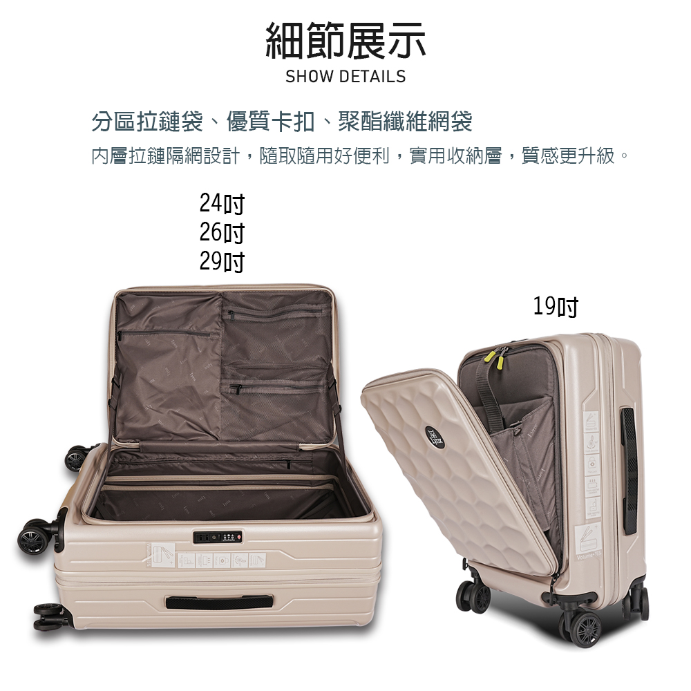 🌞19吋行李箱前袋尺寸:24X33cm (約13吋筆電)