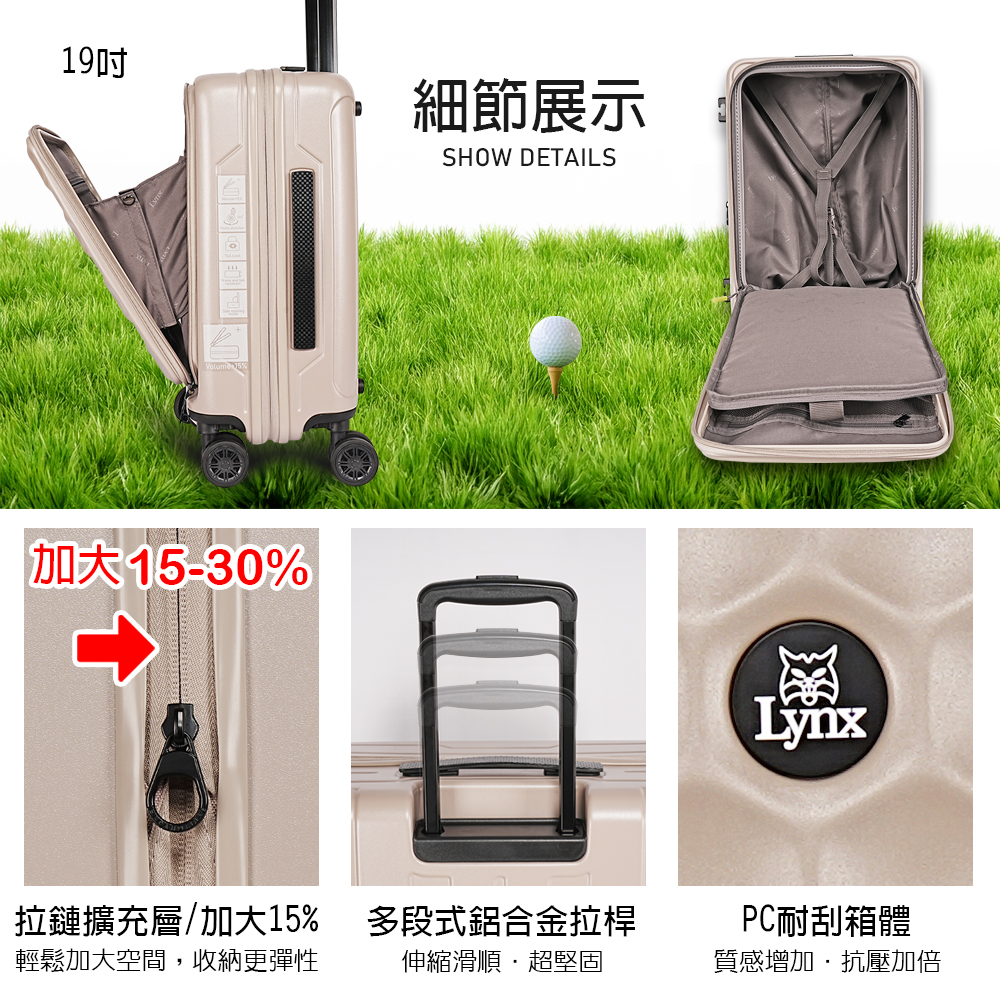 【Lynx 美國山貓】 19吋前開登機箱-高爾夫球款