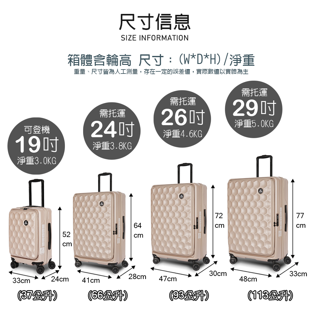 24吋 64*41*28CM(含輪)/淨重3.8KG (66公升) 需托運